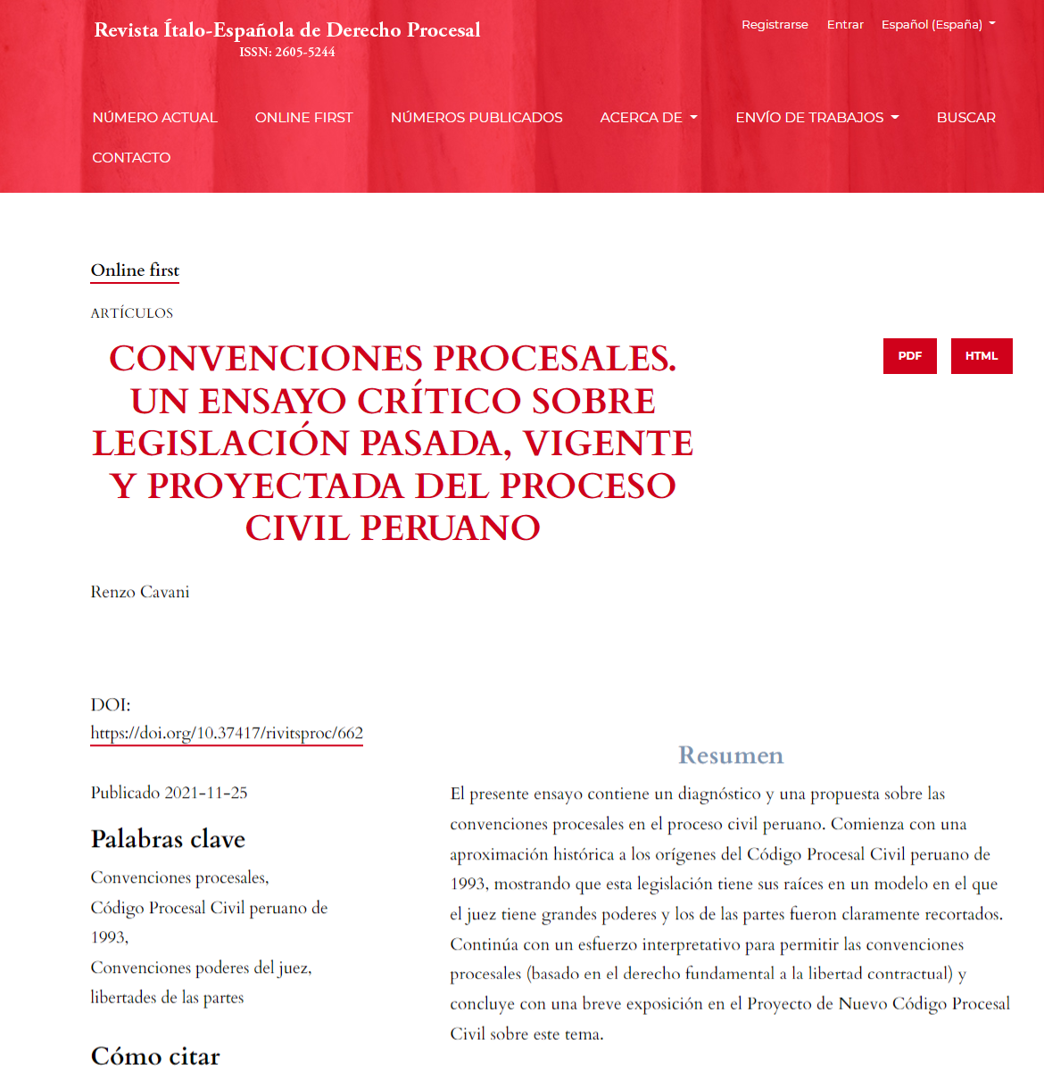 Queridos/as, hace pocos días se publicó el preprint, en la Revista Ítalo-Española de Derecho Procesal, de mi artículo «Convenciones procesales. Un ensayo sobre la legislación pasada, vigente y proyectada del proceso civil peruano«.