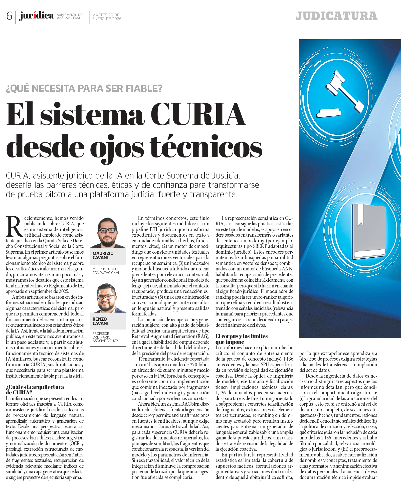 Hace algunos días salió publicado el artículo «El sistema CURIA desde ojos técnicos», que escribí con mi hermano el Profesor Maurizio Cavani en el suplemento «Jurídica» de El Peruano. Este texto profundiza un poco más en la arquitectura y funcionamiento que tendría el sistema CURIA que desde el año pasado viene siendo usado en la Corte Suprema de Justicia.